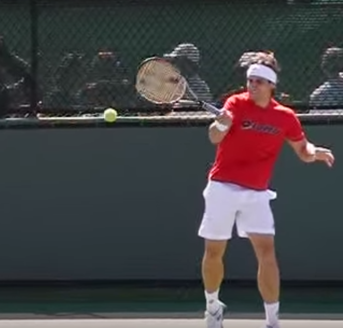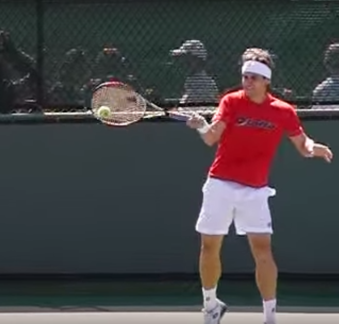 前から見たフェレールのフォアハンド強打: